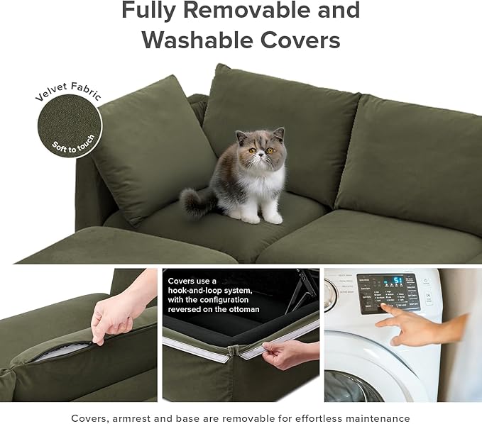 mopio Oversized Modular Sectional Sofa with Fully Removable Covers and Storage, Convertible U, L-Shaped and Sleeper Sectional, Modern Couches with Ottoman Chaise (Olive Green Velvet, 4 Seats, L)