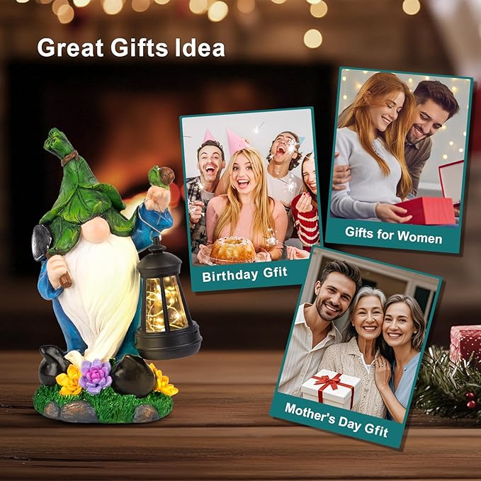 - [Creative Garden Decor] Elevate your garden with our solar gnome statues! In the quiet of the night.These gnome solar lights come to life when they turn on.These charming companions not only light up your outdoor space but also add a touch of whimsy. Brighten your nights with eco-friendly magic!
