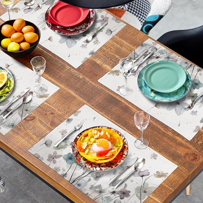 - PERFECTLY SIZE: The rustic floral placemats set of 4, Each brown cream grey teal flowers placemat is 12x18 inch (30 cmx45 cm) that can exactly fits your needs to use in all kinds of situations