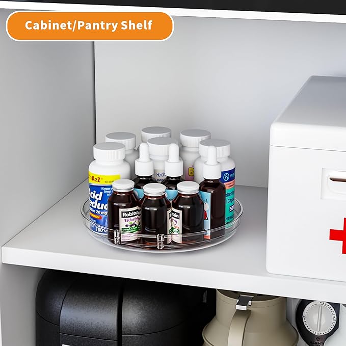- 【Used for hard to reach spaces】No more wasted food,jars,sauces and Condiment due to forgotten items,this turntable organizer allows for easy rotation and access to items even in the back, making it ideal for narrow and hard-to-reach spaces,Perfect spinning storage organizer for table, kitchen countertop, under the sink, cabinet closet, pantry, refrigerator, bathroom countertop, vanity makeup, office and more.