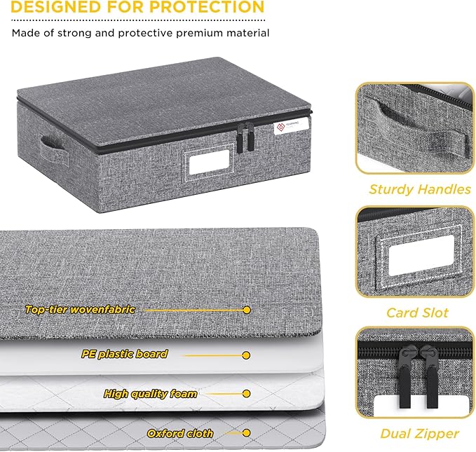 - 【Reinforced Handle&Zipper】:Our cup storage boxes have two double-stitched handles that are better to hold when these cup storage organizer are full of mugs. And the reinforced with sturdy polyester thread ensuring that they will not break off during moving your mugs. The high-quality zipper is smooth and made of sturdy stainless steel, ensuring it slides easily even when the storage bag is full. And each containers includes a card label window to quickly identify contents inside.