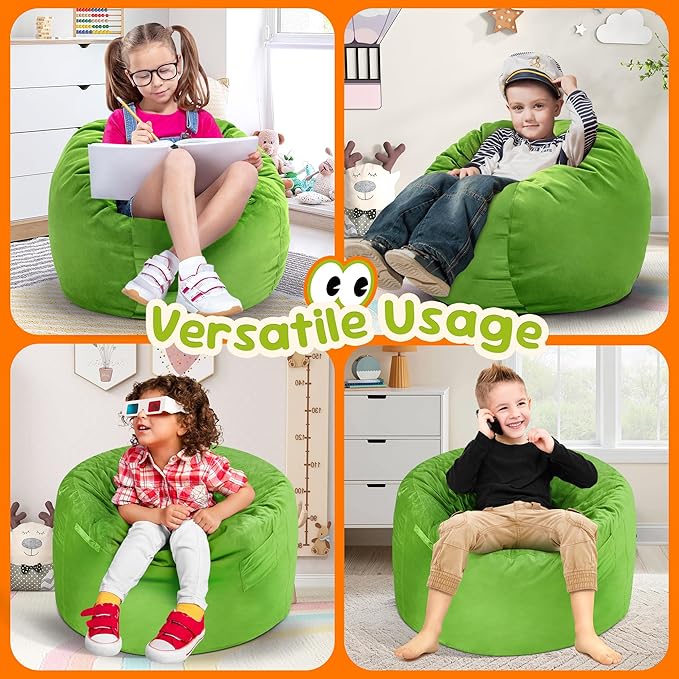 - Comfortable Bean Bag Chairs: Boys and girls alike will enjoy the comfy beanbag chairs. The bean bag cover is made of 100% skin-friendly and soft fabric, and it's filled with high-density memory foam, which is super comfortable and supportive to sit on.