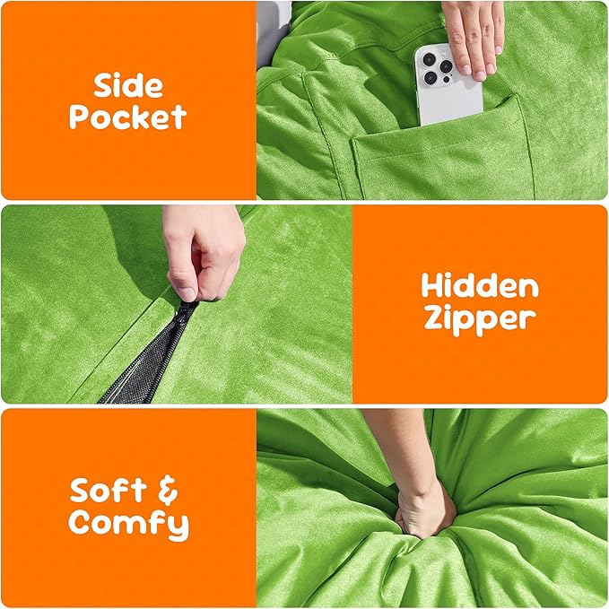 - Thoughtful Details: The bean bag chair comes with a carrying handle, making it easy for your little one to move it from room to room. Moreover, the small bean bag chair features a side pocket where your litte one can store their own belongings.