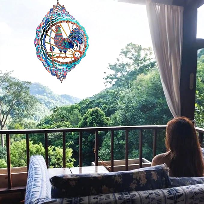 - ★【Fascinating 3D Reflective Wind Spinner】12 inch colorful yard art rooster wind spinner follows the trendy kinetic art design style. The wind spinners hanging can rotate 360°,creating a magical 3D stereoscopic visual effect by different colors on the surface,Reflective gilt powder material gives off a sparkling,like a beam of sunlight through the night and bringing you strength,courage and vitality,add captivating and magical visuals and bring stunning views to your home,garden and yard.