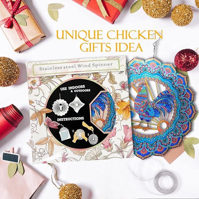 - ★【Unique Chicken Gifts Idea】For this garden decor hanging wind spinner,we not only designed exquisite colorful gift box packaging for this product,but also hollow out design in the middle of our gift box,which is more convenient to distinguish product what you buy!As a unique chicken gifts for women,mother,father,men,neighbors,friends,etc.Suitable for all occasions,like birthdays,Engagement,Wedding,Mother's Day,New Year,Anniversary,Father's Day,housewarming,Valentine's Day,Thanksgiving Day,Christmas etc.
