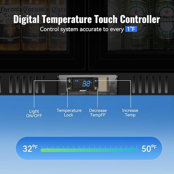 - 【Generous Capacity】With a spacious 200L interior, the dimensions of this display refrigerator are 20.47"D x 35.42"W x 35.43"H, accommodating up to 216 standard 12 oz cans