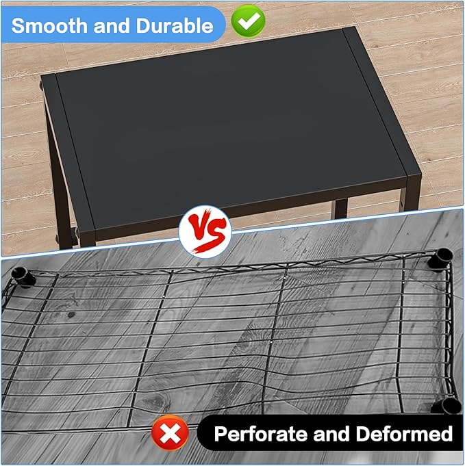 - ใ๐๐ผ๐ป๐๐ฒ๐ป๐ถ๐ฒ๐ป๐ ๐ง๐ผ ๐จ๐๐ฒใ: --- The pantry storage shelves can hold items securely and be cleaned easily as it is solid and flat not as many holes as other wire shelves. Its whole body is finished by double layers black powder coating ensuring never rust.