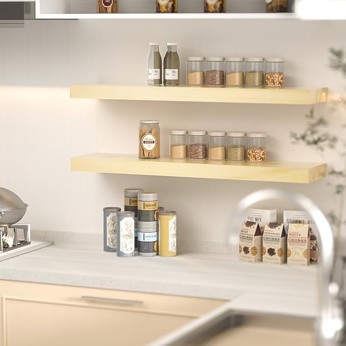 - Farmhouse Finished: Applying clear varnish to solid wood boards, the shelves are enhanced for durability with anti-moisture and anti-heat properties while preserving the natural grain and knots of the pine wood. Adorn your home in style