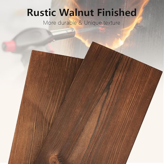 - Farmhouse Finished: Subjected to carbonization, followed by cleaning and subsequent oiling, the shelves are enhanced for durability with anti-moisture and anti-heat properties while preserving the natural grain and knots of the pine wood. Adorn your home in style