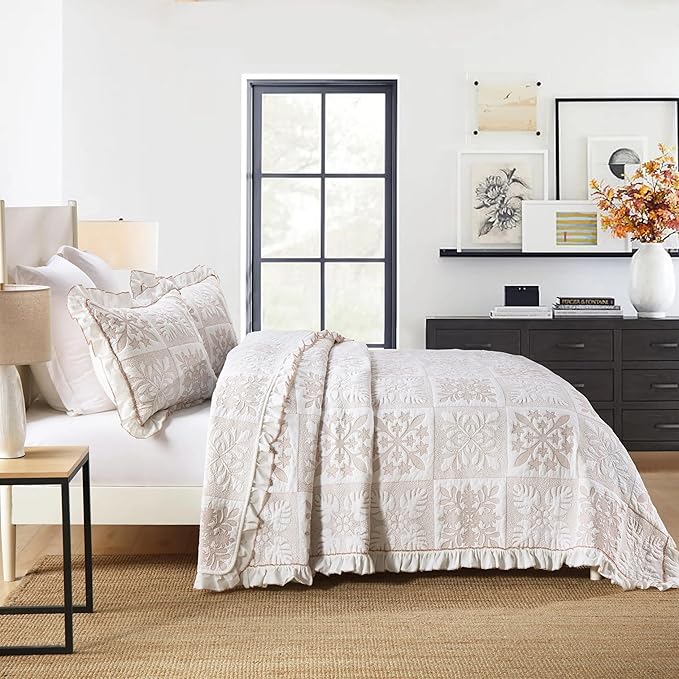 - ALL-SEASON COMFORT: This Oversized bedding set is designed for year-round use. Lightweight and breathable queen or California king size is perfect for beds, guest rooms, or seasonal refreshes. Enjoy versatile, year-round comfort with this durable quilt set.