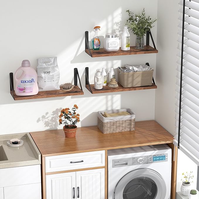 - 【ELEGANT STYLING DESIGN】High quality rustic floating wood shelves reflects a vintage elegance that meets both your decorative and organizational needs. It complements the warm home style design and shows off a distinctive taste