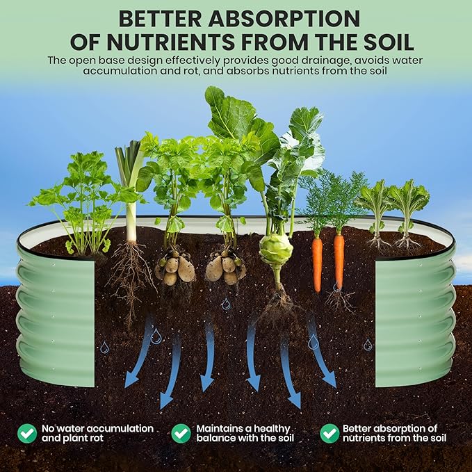 - ๐ณ Unmatched Stability: Crafted with 0.5mm thick overlapping galvanized panels, reaching up to 1.8mm at the seams, our raised garden bed provides excellent strength and stability. The integrated screw fastening edge and unique oval form ensure it remains solid and secure, even when fully planted.