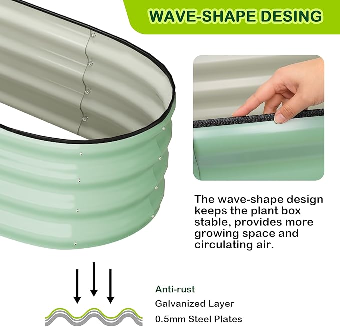 - ๐ฟ Superior Quality: Constructed from high-grade galvanized steel, this outdoor raised garden bed features robust double-layer corrosion resistance. Its elegant oval shape not only adds to your garden's aesthetics but also enhances durability under pressure, ensuring a reliable and long-lasting gardening solution.