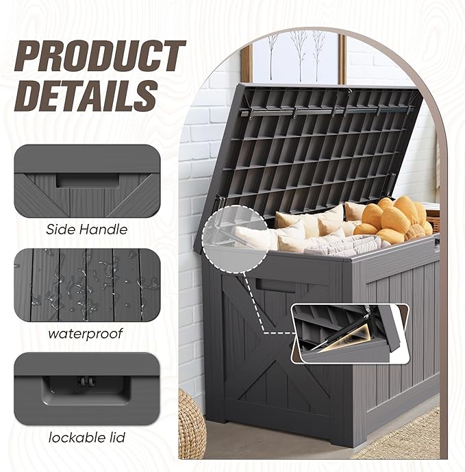- Safe and Stable: The lockable attribute ensures that the items of the box are absolutely secure. The hydraulic rod keeps the deck box open and closed effortlessly