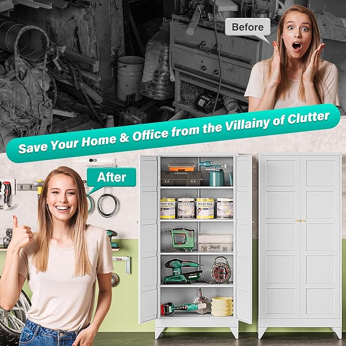 - 6 Tier-Large Capacity : Wide & Deep storage cabinet have 6 tier for you to store kinds of sundries, toys,tools,food,kitchen appliances and supplies.Let you organize your space like a pro. Save your home from the villainy of clutter.