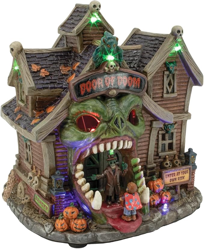 Door of Doom Halloween Village with LED Lights and Music with Volume Control