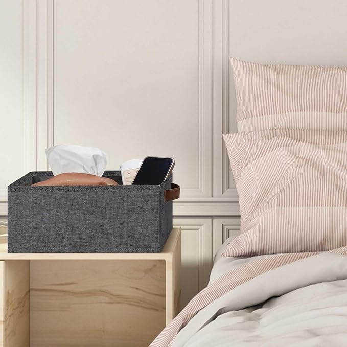 GhvyenntteS Small Fabric Storage Bins 6 Pack, 11.8" x 7.87" x 5.11" Storage Basket with Leather Handles, Closet Storage Bins for Shelves, Storage Baskets for Shelves, DVD Storage (Grey)