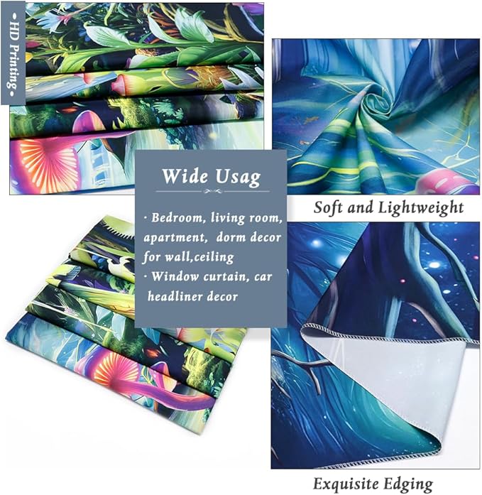- UV/ Blacklight Reactive: The fantasy landscape tapestry adopts advanced HD printing technology, with clear patterns and vivid colors. It can glow gorgeously under black light or UV light in the dark. Under normal light, the color is also full and vivid.
