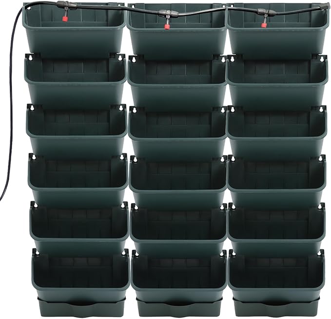 18 Pots Self-Watering Wall-Mounted Planter, 39.4”L x 39.4”H Vertical Wall Planter Self Watering Stackable Planters Vertical Garden Wall Garden Planter Outdoor Indoor for Herbs Flowers Strawberries
