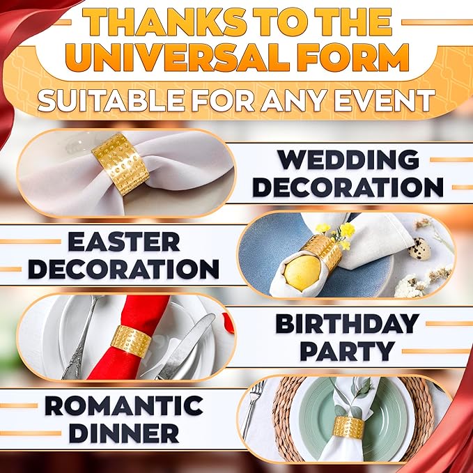 - An Elegant Table Accent: These hammered gold napkin rings add a refined touch to your table decor, great for large gatherings, celebrations