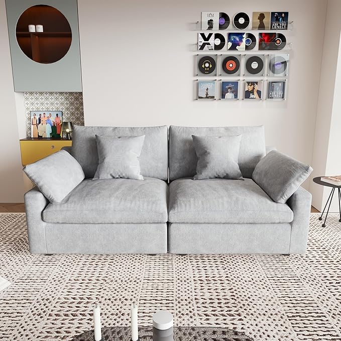 JACH Cloud Sectional Couches for Living Room, Modern Convertible Modular Couch, Love Seat Sofas, Sofa Covers Removable, Comfy Sectional Couch for Living Room, Apartment (Light Grey)