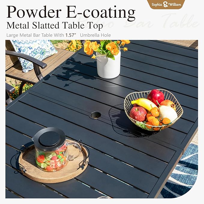- Barheight Patio Table and Chairs:Combines ergonomic high back design with seamless swivel functionality, this bar set provides a stylish and elevated seating option that adds flair to any space. Patio bar table features a classic and neat tabletop with 1.57 umbrella hole