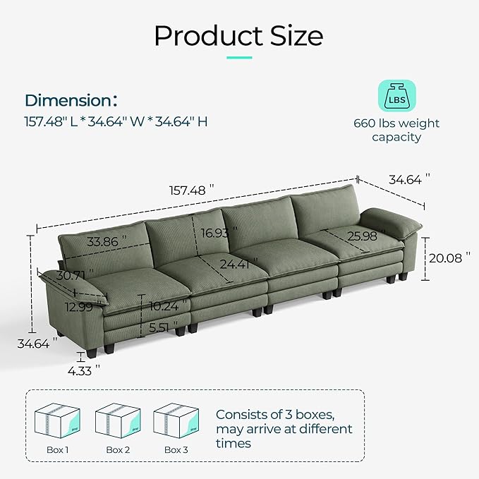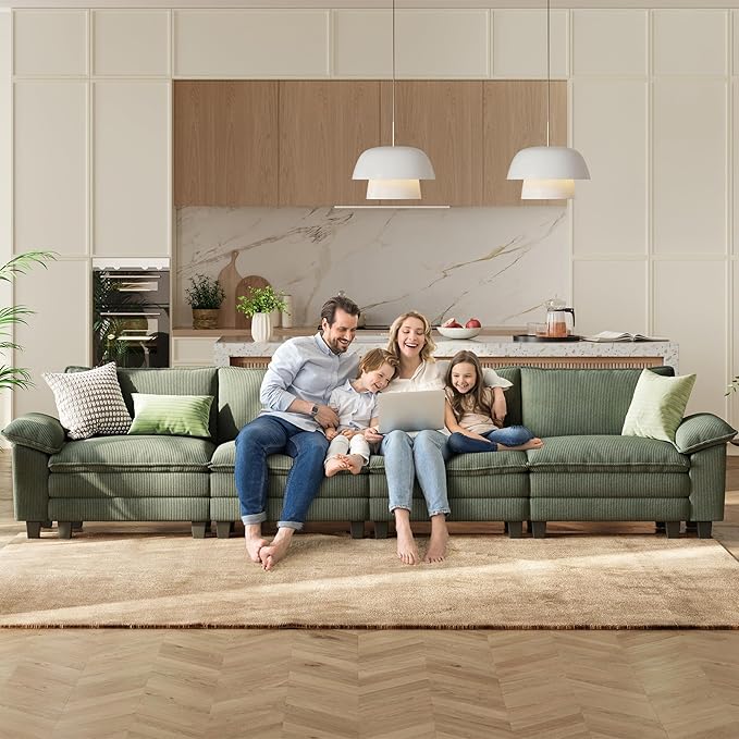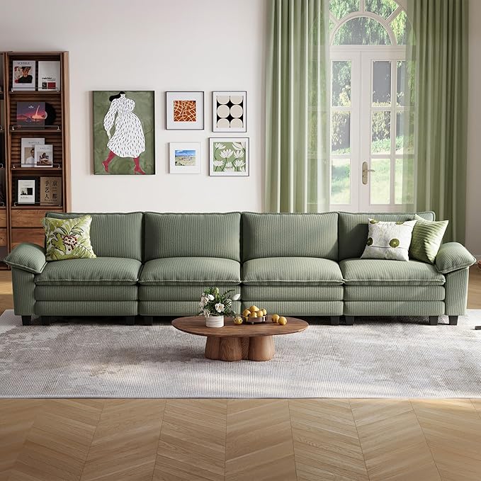 LINSY HOME Oversized Modular Sectional Sofa - 157'' Corduroy Cloud Couch Deep Seat Modular Sofas Soft Modern Comfy Couches for Living Room Apartment Office, Green