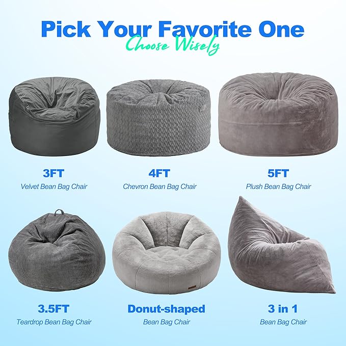 - Easy to Install: It is compressed into a small package and please leave it for 2 days to recover from opening the package, put the cover on and shaking it and fluffing it occasionally, then large bean bag will take in air and expanded beautifully. Oversized bean bag chairs for adluts also comes in various colors, allowing for personal customization to suit your decor.