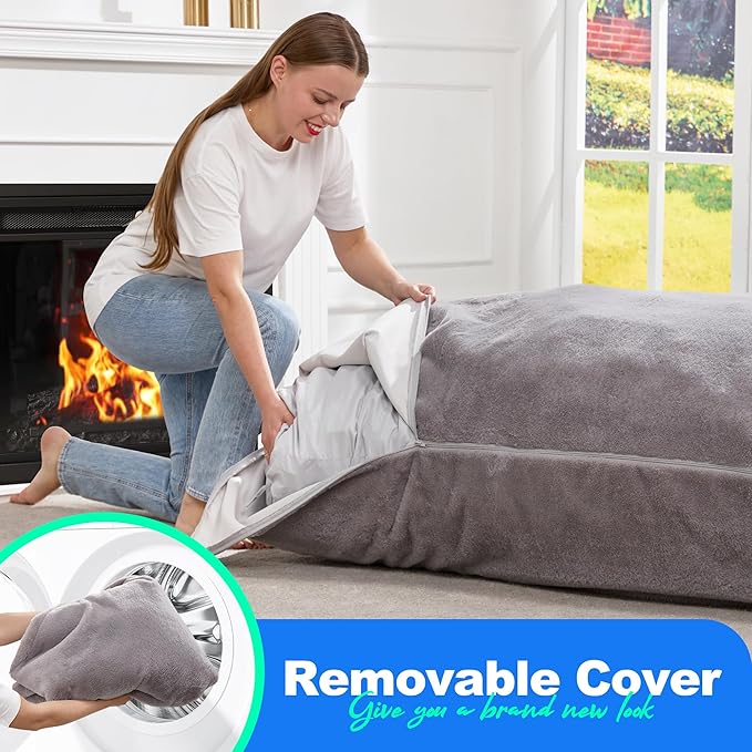 - Removeable Cover: The plush faux fur cover of our bean bag chair for adults is durable and easy to clean, which is great for a household with pets. Covers can come off so you can just put it into the washing machine to keep fresh. It can withstand regular use without showing significant wear and tear. Additionally, the convenience of a removable and washable cover adds to its appeal, making bean bag couch an excellent choice for combining style, comfort, and practicality in any living space.