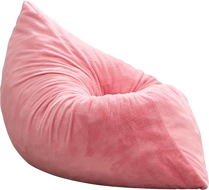 Hobestluk 3 in 1 Bean Bag Chair Giant Bean Bag Chairs for Adults with Chevron Plush Fur Cover Convertible Bean Bag Floor Cushion with Machine Washable Cover for Living Room (Plush Pink)