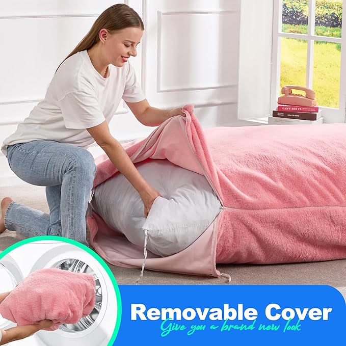- 3 in 1 Convertible Bean Bag Chair: Big bean bag chair is versatility in adjusting to various shapes makes it a ideal fit for any room, whether it's for unwinding in the living room, creating a cozy reading nook in the bedroom, or setting up a snug study spot in a dorm. As a 3 in 1 product, bean bag bed for adults can be used as a traditional bean bag chair, lean it up against a wall like a bean bag sofa, or laid out as a bean bag floor cushion.