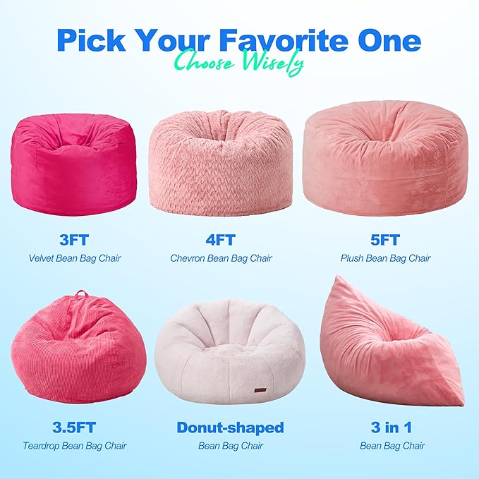 - Easy to Install: It is compressed into a small package and please leave it for 2 days to recover from opening the package, put the cover on and shaking it and fluffing it occasionally, then large bean bag will take in air and expanded beautifully. Oversized bean bag chairs for adluts also comes in various colors, allowing for personal customization to suit your decor.