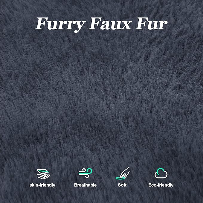Hobestluk 3 in 1 Bean Bag Chair Giant Bean Bag Chairs for Adults with Plush Faux Fur Cover Convertible Bean Bag Floor Cushion with Machine Washable Cover for Living Room (Plush Dark Grey)