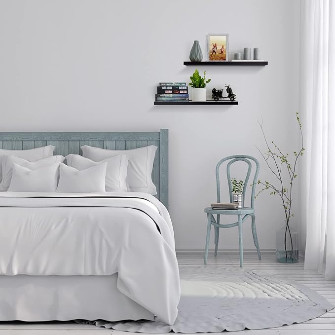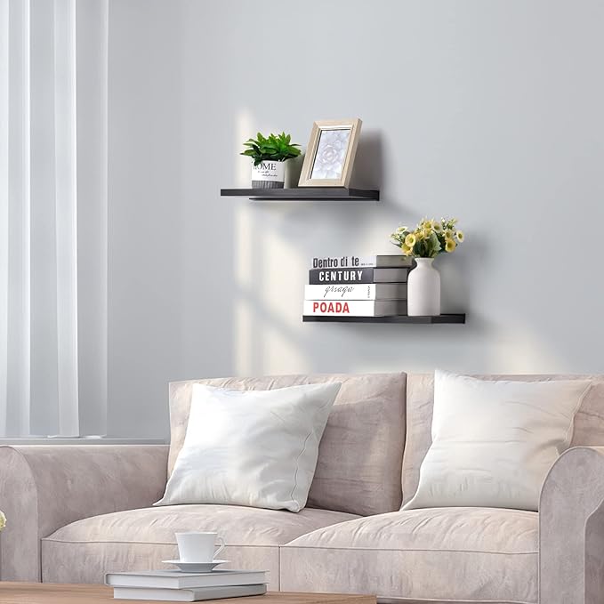 Meangood Floating Shelves Black 17 inch Wall Mounted Natural Bamboo Wood Wall Storage Shelves for Bedroom,Living Room,Bathroom, Kitchen(Set of 2)