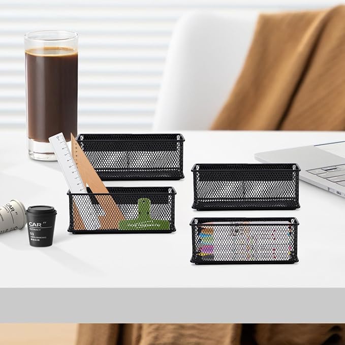 6.29'' × 2.28'' × 2.48 Black Magnetic Basket for Refrigerator Magnetic Organizer Holder Locker Organizer for Home Office Accessories Magnetic Basket for Whiteboard,Set of 4