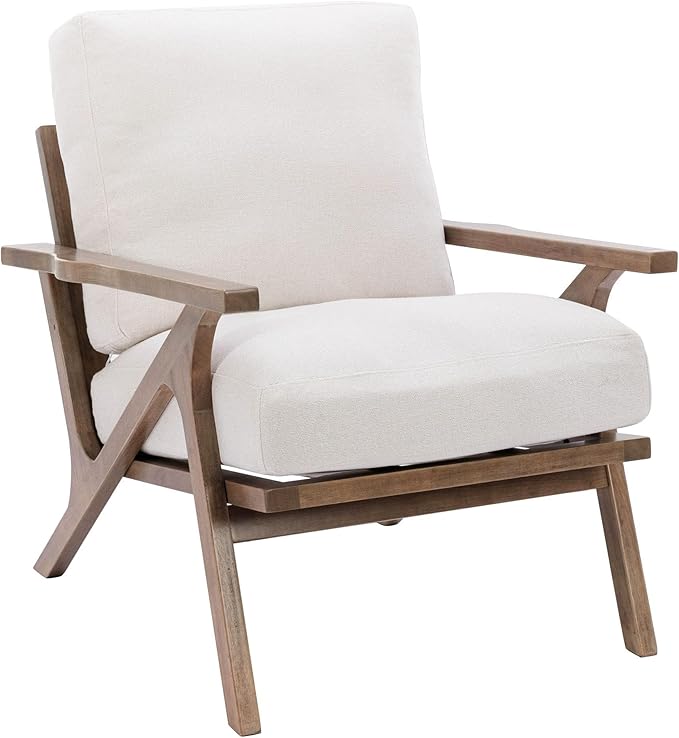 HNY Mid Century Modern Accent Chair, Farmhouse Retro Linen Upholstered Armchair for Living Room Bedroom, 23'' Seat Wide Leisure Slipper Chair with Wood Frame, White
