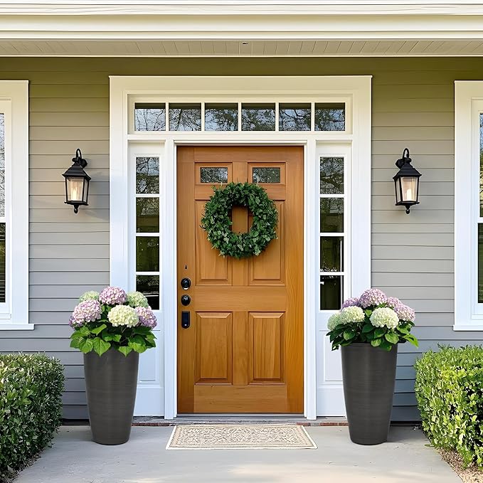 - ALL-WEATHER RESISTANT: Made from high-density resin treated with UV inhibitors, these large flower pots are built to resist fading, impact, cracks, and frost, ensuring reliable performance in all seasons.