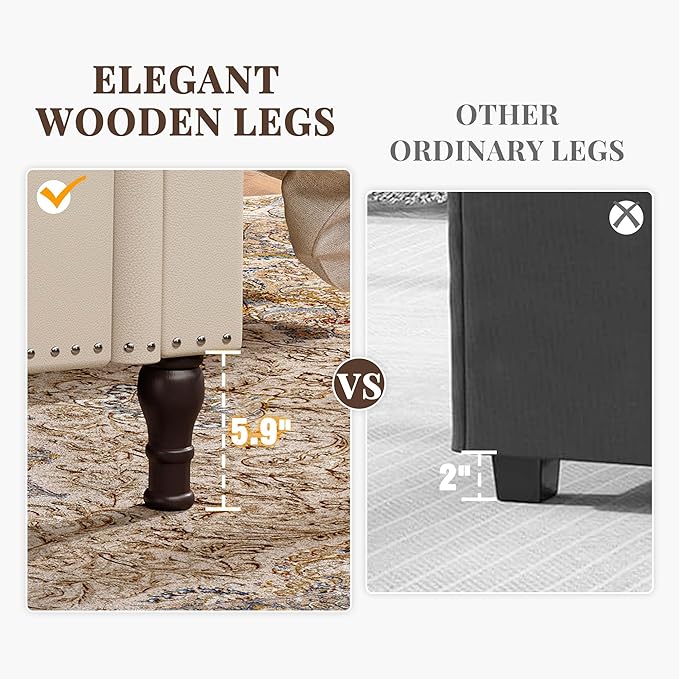 - 【ROLLED ARM & RIVET DECORATION】This bed bench combines rolled arms with vintage rivets, which can reduce wear on the bottom edges. The surface leather is closely adhered to the inner sponge, making it resistant to deformation. The exquisite design decoration adds a sense of fashion to your room while providing practicality and aesthetic appeal.