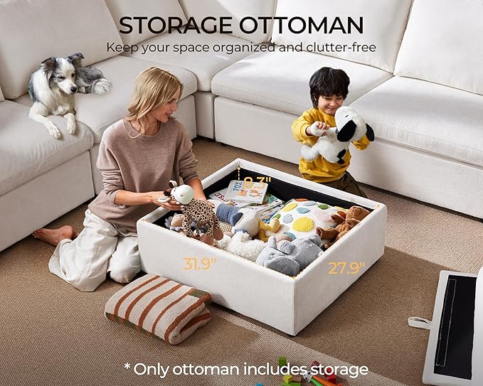 - 【Optional Hidden Storage for a Tidy Space】 Maintain a clutter-free home with the optional storage ottoman module, designed to keep blankets, pillows, or toys neatly tucked away. Convertible Couch with storage ensures essentials are always within reach yet out of sight, adding both function and style to your oversized fluffy modular sofa. Note: Storage is only available in configurations with the ottoman module