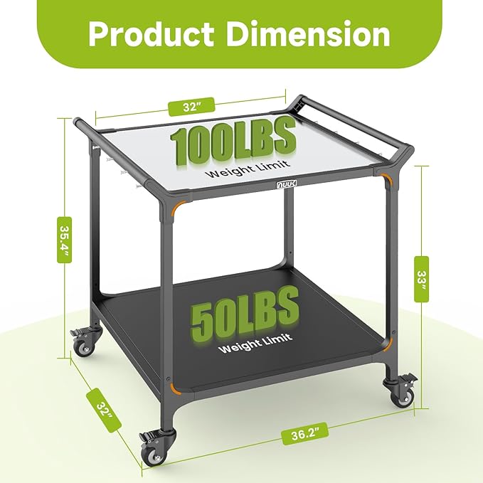 - Sturdy Structure: The grilling prep table is constructed with heavy duty steel tube frame structure, ensuring durability. The tabletop can withstand a weight of up to 100 pounds, while the second layer shelf can handle 50 pounds, which is more than enough to accommodate most BBQ griddle grill or pizza oven usage.