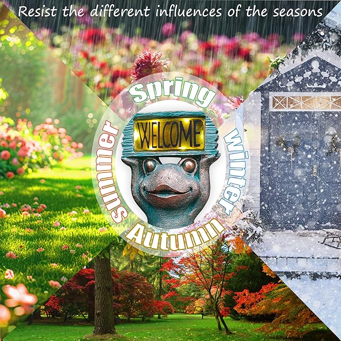 - 【Product Design】Our product is a solar-powered rabbit statue holding a welcome sign,This outdoor solar Statue can enhance the creative charm of your outdoor spaces such as gardens, porches and courtyards. It is an excellent choice for adding a touch of fun to any environment, especially for Mother's Day, Christmas, Thanksgiving and other festivals,The size of the statue is 6.1X4.9X11.5 inches,This statue is made of durable polyresin and has rechargeable batteries included.