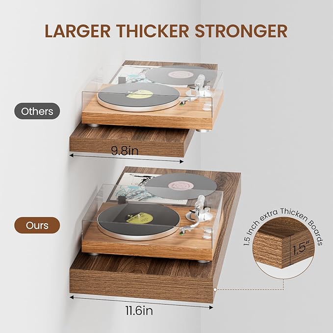 - Extra Deep Floating Shelves: Measuring 11.6” D x 23.6” W x 1.5” H, these shelves are crafted for maximum depth and durability. The spacious 12” depth gives you plenty of room for stylish display, organized storage, and decorative accents. Perfectly suited for your bathroom, kitchen, or living room, they enhance both function and flair in any space!