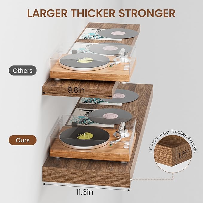 - Easy Installation: Comes with all the mounting hardware and detailed instructions, easy to install within 10 minutes. Thicken & strong metal brackets provide excellent support, keeping the floating shelves sturdy against the wall without sagging. The pre-drilled holes allow for secure attachment of boards to brackets, ensuring a reliable display.