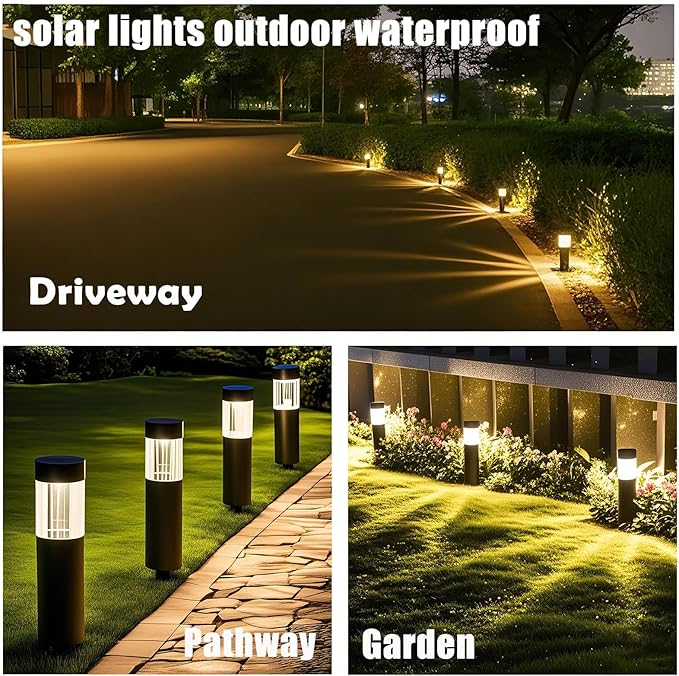 - 【DURABLE STAINLESS STEEL & ALL-WEATHER DESIGN】 – Crafted with rust-resistant stainless steel and IP65 waterproof protection, these solar lights withstand rain, snow, frost, and summer heat. Heavy-duty and maintenance-free, they deliver reliable lighting year-round and keep your outdoor décor shining.