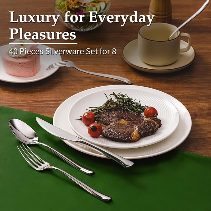 Aisoso 40-Piece High-End Silverware Set with Forks Spoons and Knives, Stainless Steel Serving Utensils for 8 with Mirror Finished Handle, Durability and Dishwasher Safe for Restaurant, Weddings