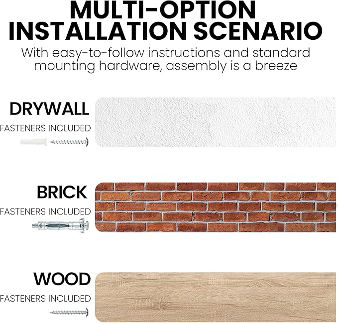 - Seamless Structural Ingenuity: Engineered for the effortless mounting of floating shelves, the integrated heavy-duty bracket system pairs with reinforced metal anchors to securely hold up to 50–60 lbs. A streamlined, bracket-free façade combined with anti-slide screws ensures polished aesthetics without compromising stability