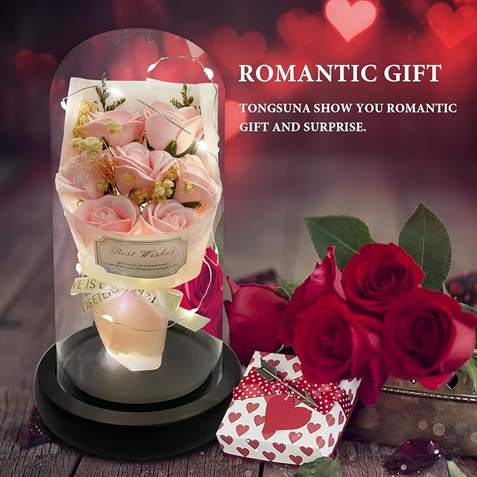 - 【Valentines Flowers Gifts Come With Happiness】:Women Gifts from daughter son. Valentines gifts for her. The twinkle lights wrapped around the flower rose bouquet in glass dome. Everyone will fascinate it when it light at romantic nigth. Get it on the special day, get happiness and sweet time.