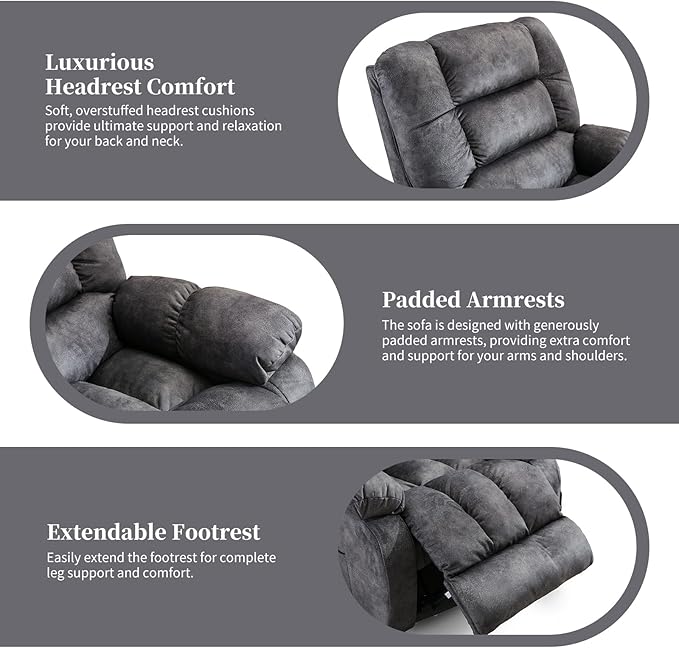 - 【Premium Comfort & Support】Stuffed with high-density foam, this recliner provides optimal softness and ergonomic support. Upholstered in durable, breathable fabric, it offers a luxurious feel while being and long-lasting. The sturdy construction ensures years of dependable use.