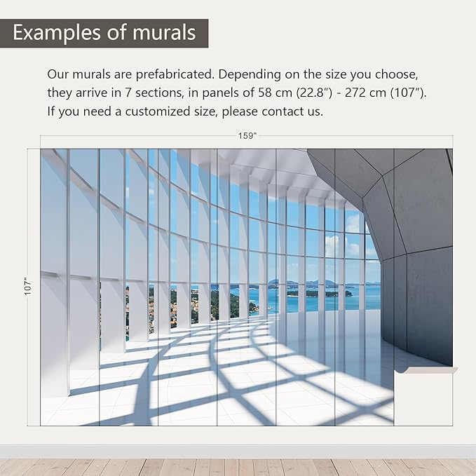 - Size note: Mural measures 159"W x 107"H and is divided into 7 sections, each section is labeled with a number underneath, eliminating the need to overlap patterns when installing.