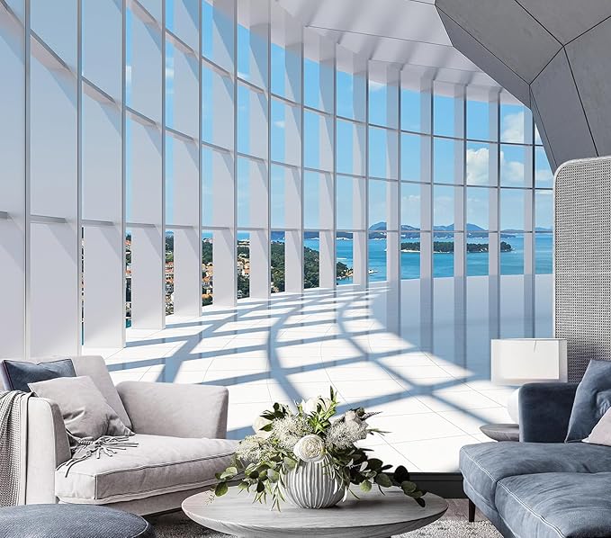 AFZEVEB-3D Blue Seascape Wallpaper Space Wall murals for Bedroom 159"x107" (Not Peel and Stick)